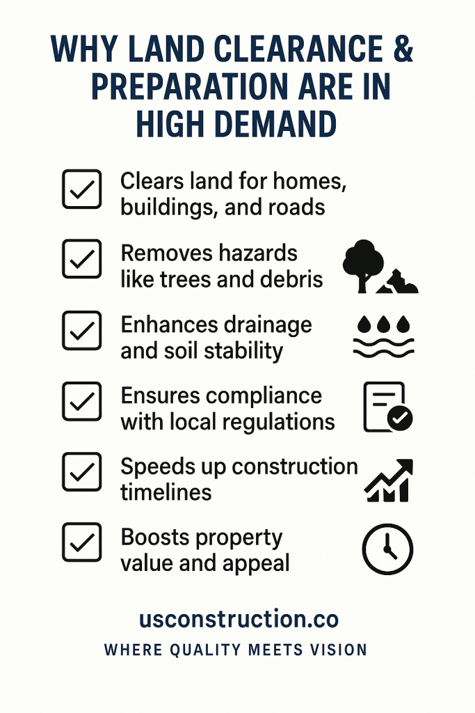 Land preparation requires strategic approaches and innovative technologies to deliver refined results. US Construction experts possess extensive local knowledge and attention to detail, offering reliable and environmentally safe operations. Here, we have listed the common concerns that need to be eradicated effectively.